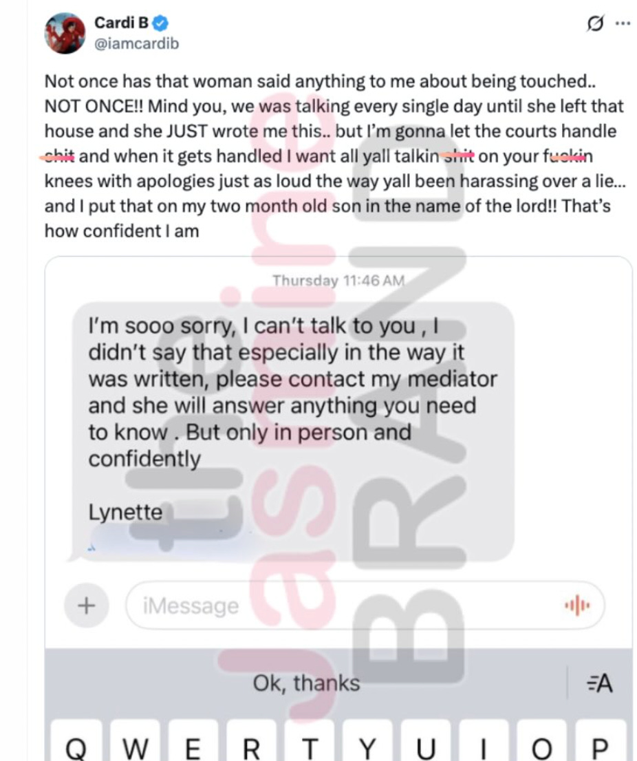 After New England Patriots star Stefon Diggs was accused of strangling and hitting his former chef, his girlfriend Cardi B is defending him in a now-deleted posts on X.