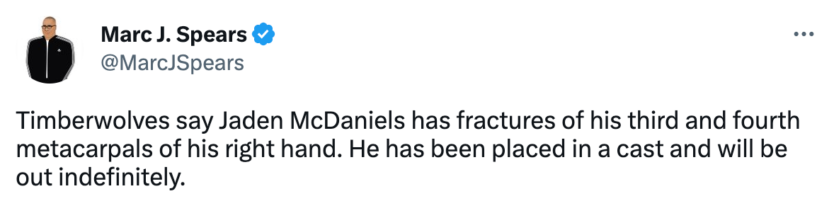 During the first half of the Timberwolves game against the New Orleans Pelicans, Jaden McDaniels punched a wall in the tunnel after he got his second foul during the first quarter. He immediately started clutching his hand and….