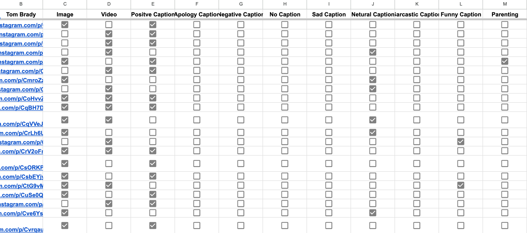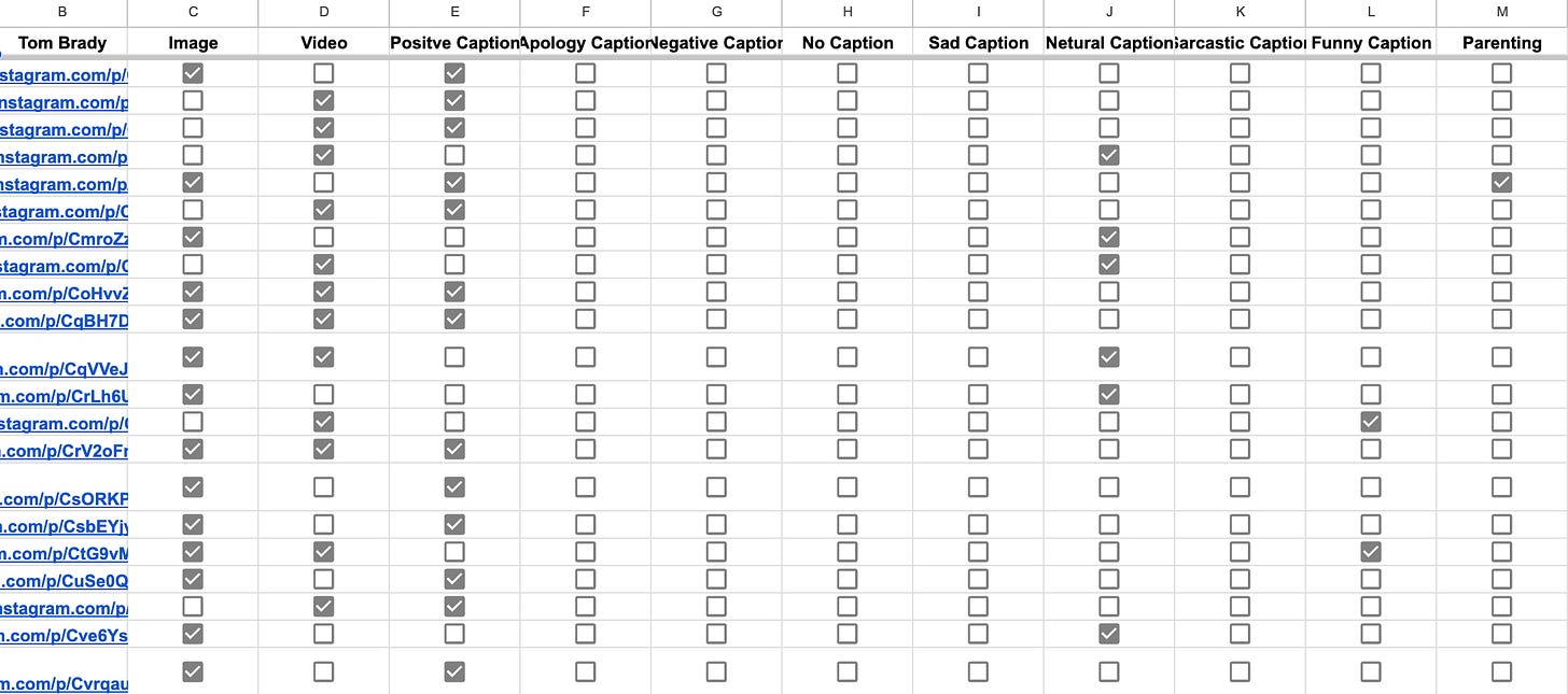 While a sample size of one isn’t really the most academically sound, I figured it might be interesting to apply the same methodology and theoretical framework to Tom Brady’s post-divorce Instagram strategy.