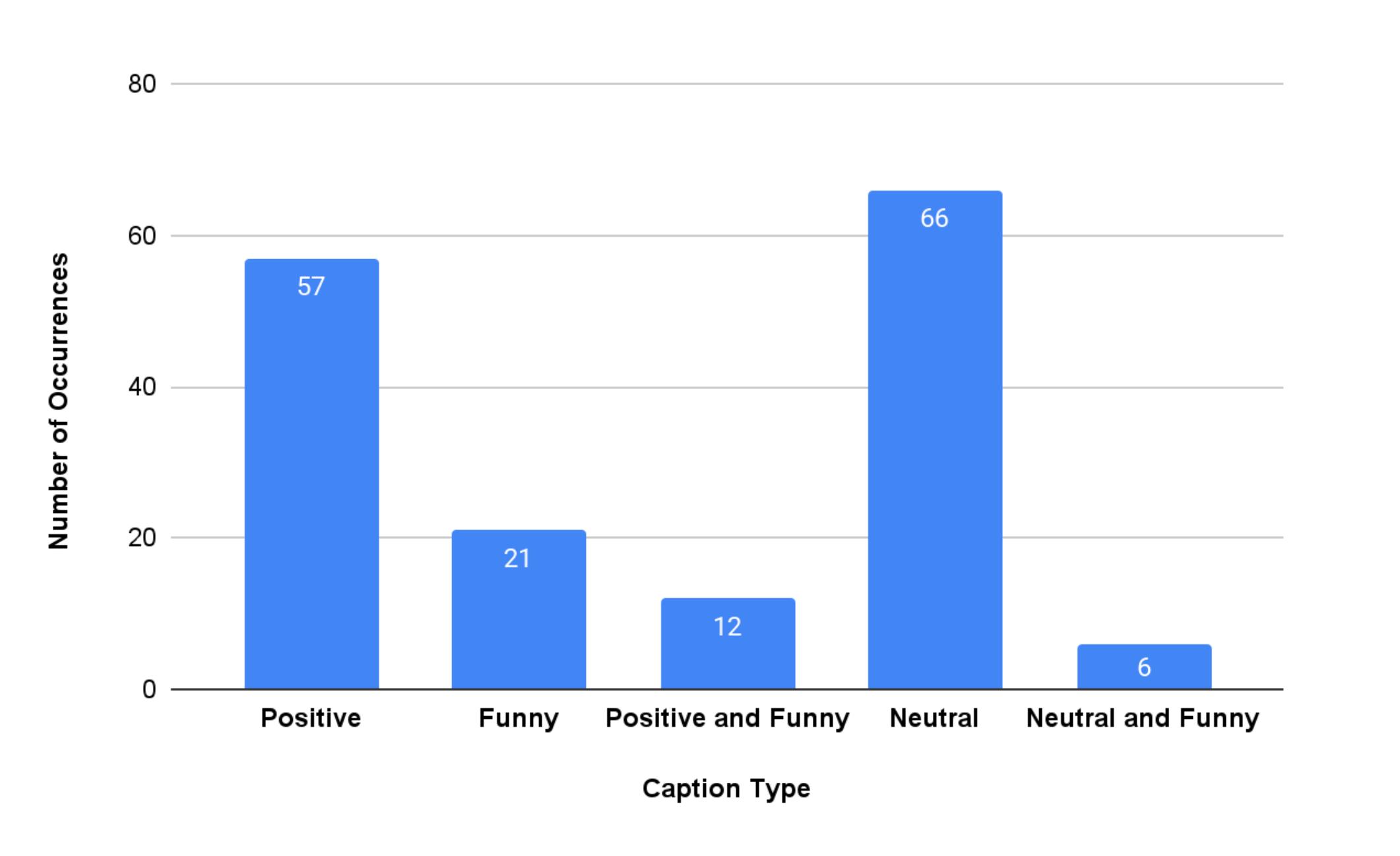 When it came to the type of caption he used, the majority of posts included either a neutral or a positive caption.