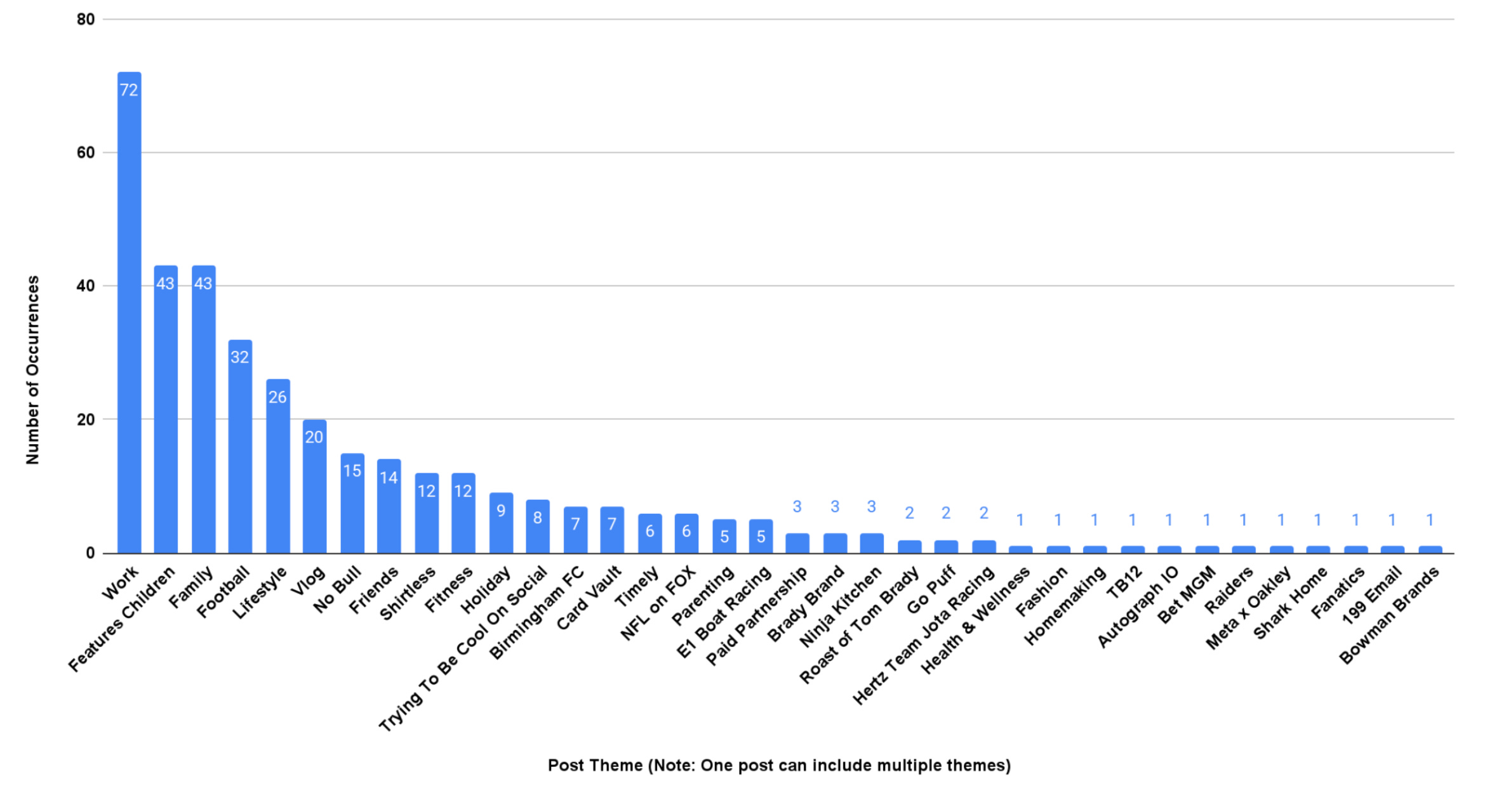 Overwhelmingly, Brady posted content about work, his kids, his family, and football the most frequently.