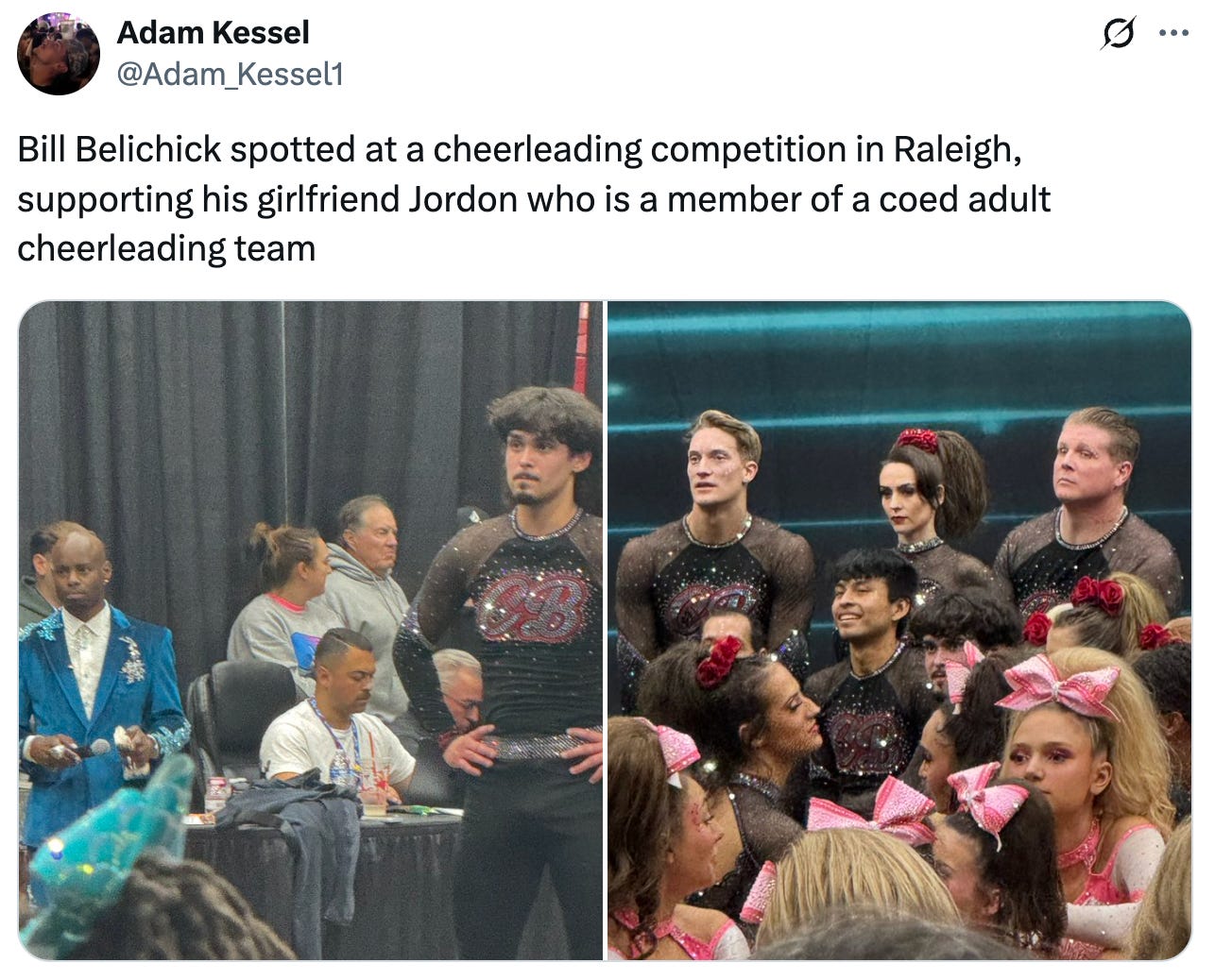 I’m not sure what’s a weirder experience: Spending five hours speaking with Jordon Hudson or seeing photos of her competing in a cheerleading competition while her boyfriend and UNC head coach, Bill Belichick, watches in the corner.