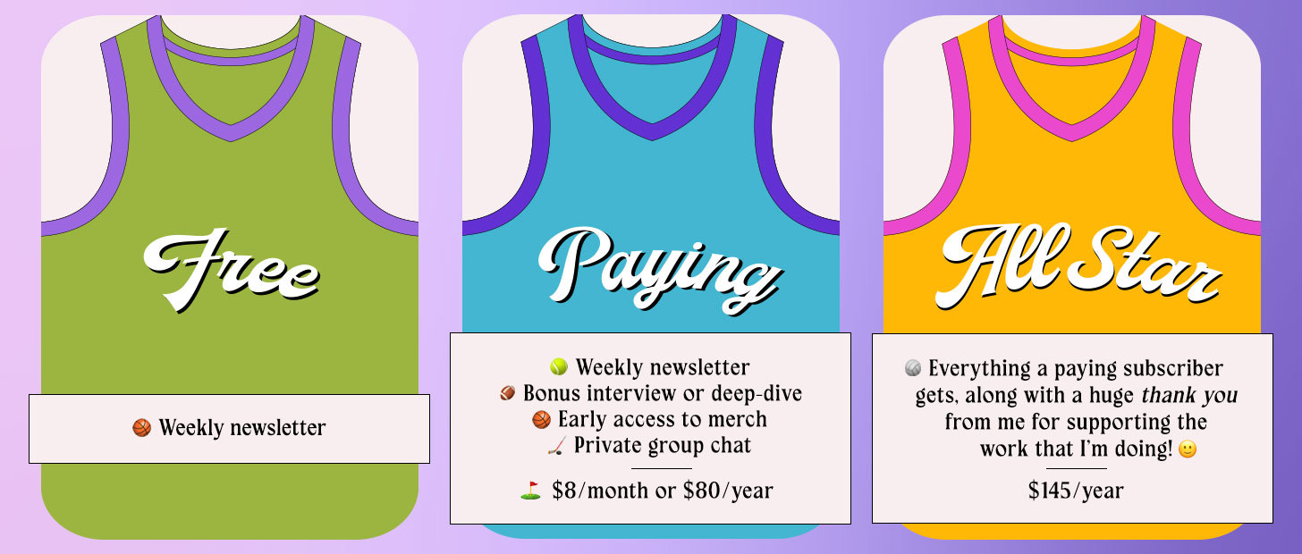 While I’ll always send out a free edition of the newsletter every week, I’m launching a paid version for readers who want to go in-depth on off-the-court drama. The paid subscription will be priced at $8/month or $80/year.